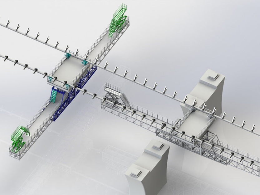 檢查車(chē)可對(duì)鋼箱梁內(nèi)進(jìn)行全方位、全立體的檢測(cè)和維護(hù)。直線(xiàn)行走可以檢測(cè)大部分區(qū)域;